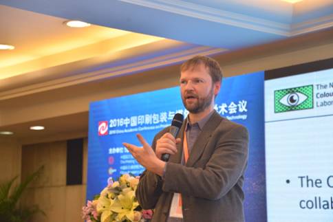 在随后的主报告环节,挪威科技大学Jon Yngve HARDEBERG教授、芬兰阿尔托大学Patrick GANE教授、斯图加特媒介大学Mathias HINKELMANN副校长分别作了题为“走向应用的多光谱彩色图像”“孔隙网络结构和表面设计:多孔网络与流体相互作用在包装,功能印刷及生命科学上的应用”“媒体发展趋势:印刷业新模式与商机”的大会主报告,与参会代表分享了他们的最新研究成果。Jon Yngve HARDEBERG教授通过光谱成像应用案例分析,深入介绍了多光谱成像技术及其解决方案,并基于此,提出和评价了一些光谱成像方法,最后与参会代表分享和探讨了光谱成像领域未来的研究方向。