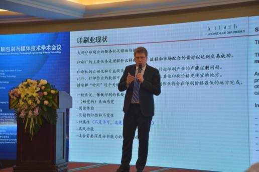 斯图加特媒介大学副校长Mathias HINKELMANN教授做“媒体发展趋势:印刷业新模式与商机” 主报告