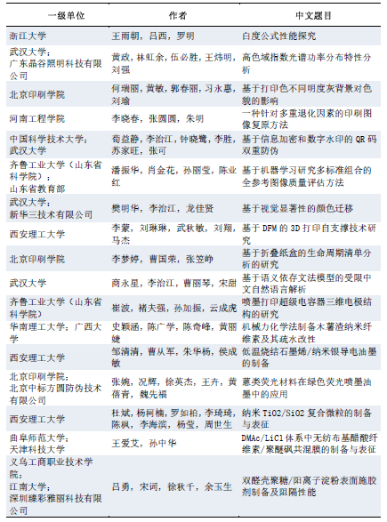 齐鲁工业大学(山东省科学院)轻工科学与工程学院刘树明书记、原北京印刷学院曲德森校长、中国印刷科学技术研究院赵鹏飞院长、齐鲁工业大学(山东省科学院)轻工科学与工程学院院长褚夫强教授、中国印刷技术协会李永林常务副秘书长和中国印刷科学技术研究院叶壮志副院长分别为优秀学术论文奖和最具行业应用潜力奖的获奖作者颁奖。
