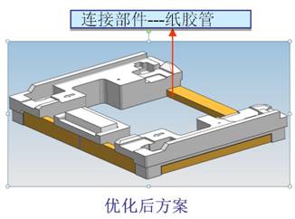 分析问题:该款产品的结构特点,其包装着力部位在底座的两侧。中间部位主要起连接作用,因此,底座中央的泡沫就是过剩的包装部分。