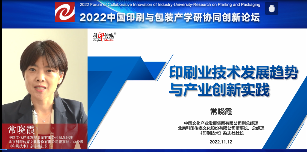 11月12日下午,由中国印刷科学技术研究院、齐鲁工业大学(山东省科学院)、《印刷技术》杂志社主办的2022中国印刷与包装产学研协同创新论坛在线上召开,2500多位高校师生、企业负责人、技术人员、供应商代表等在线观看论坛。