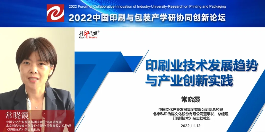 A report entitled "Development Trend of Printing Technology and Industrial Innovation Practice" was made by Chang Xiaoxia, vice manager of China Culture Industry Development Corporation, president and manager of Beijing Keyin Media Culture Co., Ltd, president of Journals Press of Printing Technology.