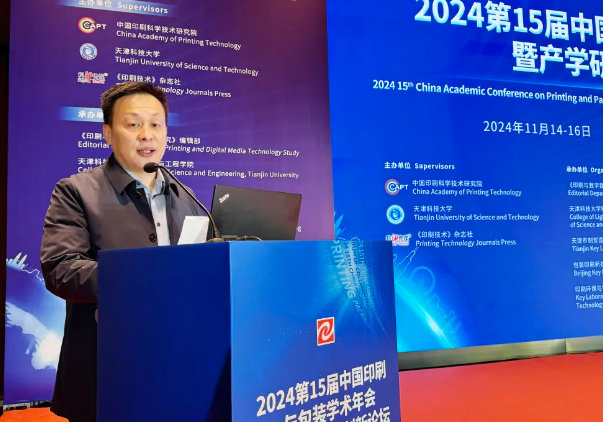 11月15日,由中国印刷科学技术研究院、天津科技大学、科印传媒·《印刷技术》杂志社共同主办,《印刷与数字媒体技术研究》编辑部、天津科技大学轻工科学与工程学院、天津市制浆造纸重点实验室、包装印刷新技术北京市重点实验室和印刷环保与智能技术重点实验室承办,国内34家印刷包装相关院校及科研机构共同联办的“2024第15届中国印刷与包装学术年会暨产学研协同创新论坛”在渤海之滨天津拉开帷幕。本次学术年会为期两天,包括主报告会、四大平行报告会和参观交流环节。来自50多家相关院校、科研机构、企业的近200名代表参会。