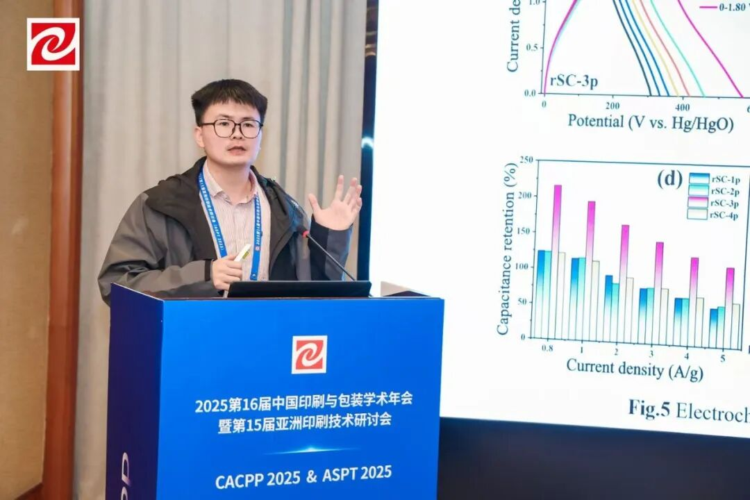 西安理工大学夏卫民教授、上海出版印刷高等专科学校吕勇教授、天津商业大学郭玉花副教授、武汉大学周奕华副教授、华新(佛山)彩色印刷有限公司副总经理俞宏明、大连工业大学王彩印副教授、中北大学于瑞恩副教授、山东泰宝信息科技集团有限公司研发部经理宋立涛、荆楚理工学院陈良哲副教授、深圳永经堂纸品有限公司法人代表任德坚博士、荆楚理工学院罗文奇老师分别做了题为“聚偏氟乙烯基柔性压电传感驱动材料与器件”“纳米纤维素水凝胶构筑及在印刷包装中应用研究”“聚乳酸/微胶囊红磷系列阻燃材料的性能研究”“可印刷功能化碳点制备及其智能生物医学应用研究”“创新驱动——印包企业绿色竞争力构建”“面向彩色印刷图像的鲁棒数字水印方法研究”“多尺度推进剂产品包装标准化设计及柔性装箱产线规划”“以技术创新引领防伪变革:泰宝在印刷产业的核心技术突破与未来探索”“面向柔性电子:rGO基超级电容器的丝网印刷制备与优化”“Spectral Color Print Quality Control by using Visual Inspection Technique”“基于智能指示标签的肉类新鲜度监测技术研究”的报告。
