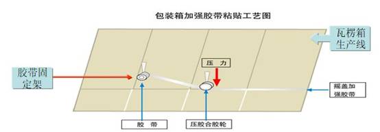 技术要求:加固胶带以摇盖折边为中心线,粘贴尺寸在两侧对称分布;粘贴时不要出现重叠起皱现象。加强胶带采用厚度以不小于0.06mm厚的标准透明胶带。