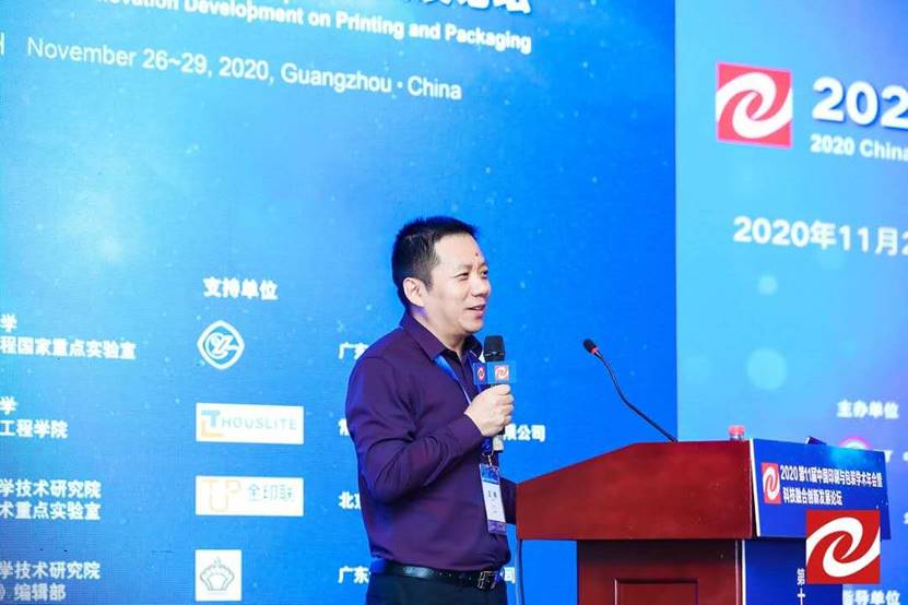 中国印刷技术协会常务副理事长褚庭亮在致辞中强调,面对复杂的经济社会环境,技术创新是关键的突破口。印刷业要不断提升产业链的现代化水平,加强核心技术、关键技术攻关力度。建议高校和企业借助中国印刷包装科技融合创新发展论坛开展全方位、高水平、深层次、重实效的科技合作。中国印刷技术协会也将坚定不移贯彻新发展理念,引导行业协同创新,促进产学研合作,形成印刷业发展新格局。广东省印刷复制业协会常务副会长兼秘书长李炯在致辞中介绍,近年来广东省印刷包装业取得长足发展,全省有1.6万家印刷企业,印刷工业总产值达到2691亿元,从业人员61万人,企业不断加大科技创新力度,新设备新材料不断涌现,正在成为我国印刷包装产业创新成果的聚集地。但是广东省印刷行业依然存在发展不平衡、不充分、新发展动能不足等问题,创新驱动的内涵式增长尚未形成,绿色发展的瓶颈制约未能根本破解,产业转型升级亟待完成。今后将继续通过产学研协同创新,提升广东省印刷包装行业的创新力和高质量发展能力。欢迎全国印刷包装院校的专家学者与广东印刷企业开展合作。