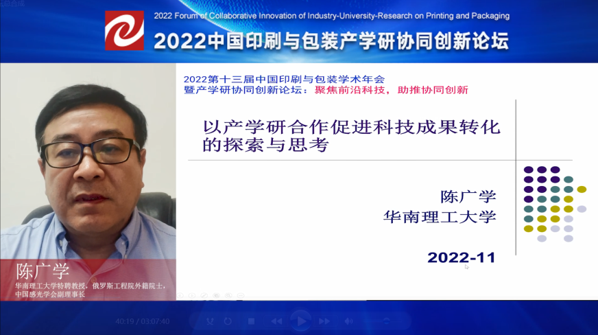 11月12日下午,由中国印刷科学技术研究院、齐鲁工业大学(山东省科学院)、《印刷技术》杂志社主办的2022中国印刷与包装产学研协同创新论坛在线上召开,2500多位高校师生、企业负责人、技术人员、供应商代表等在线观看论坛。