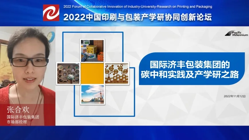 Marketing Department Zhang Hehuan of Pacific Mellennium Packaging Group Corporation, made a report on "PMPGC's Practice of Carbon Neutral & Industry-university Research".